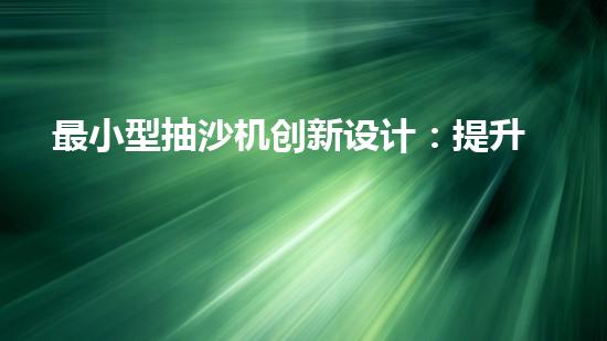最小型抽沙機創新設計:提升效率的抽沙設備如何改變產業格局?